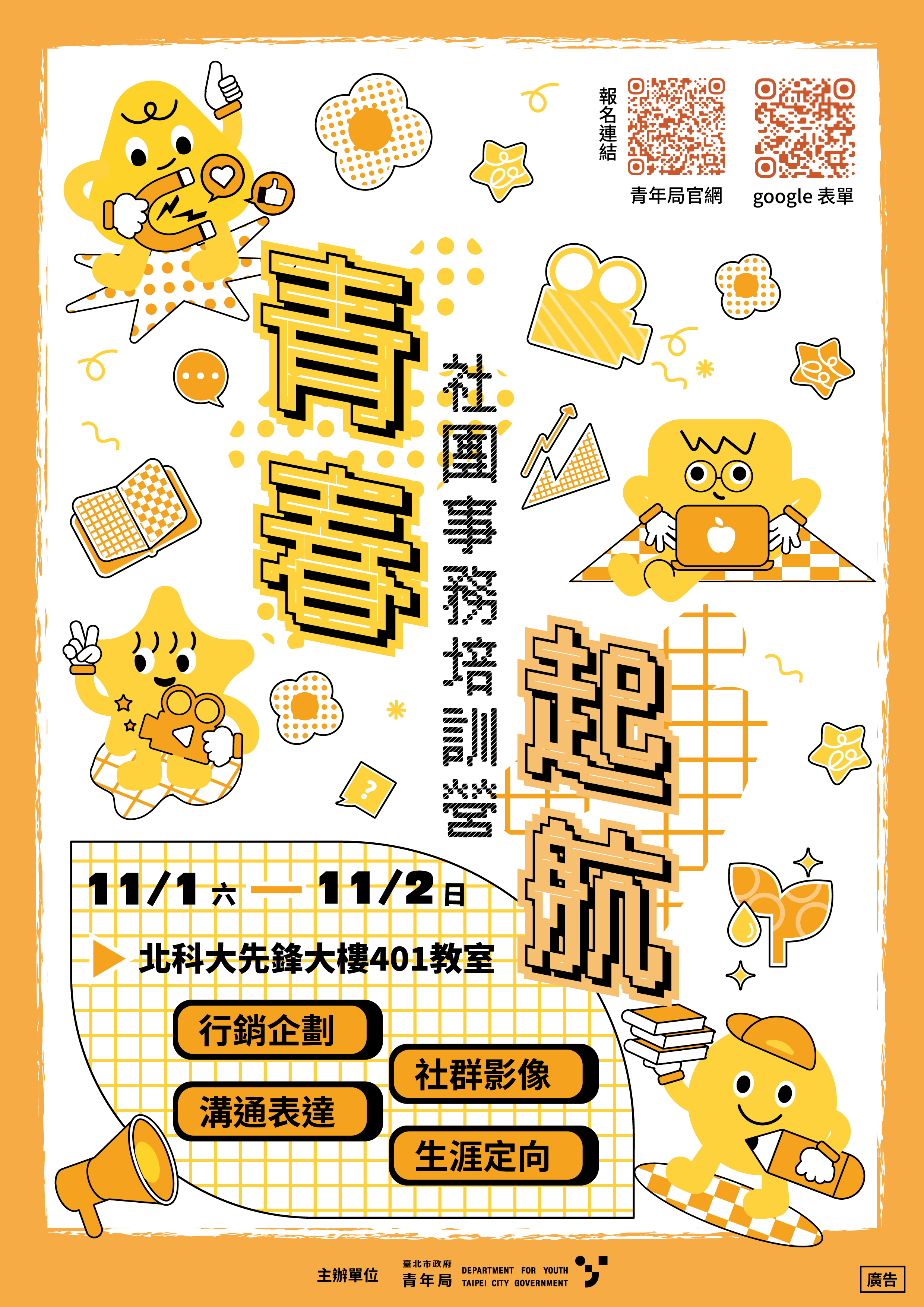 公告主旨 | 臺北市政府青年局辦理 114年度「青春起航-社團事務培訓營」 |