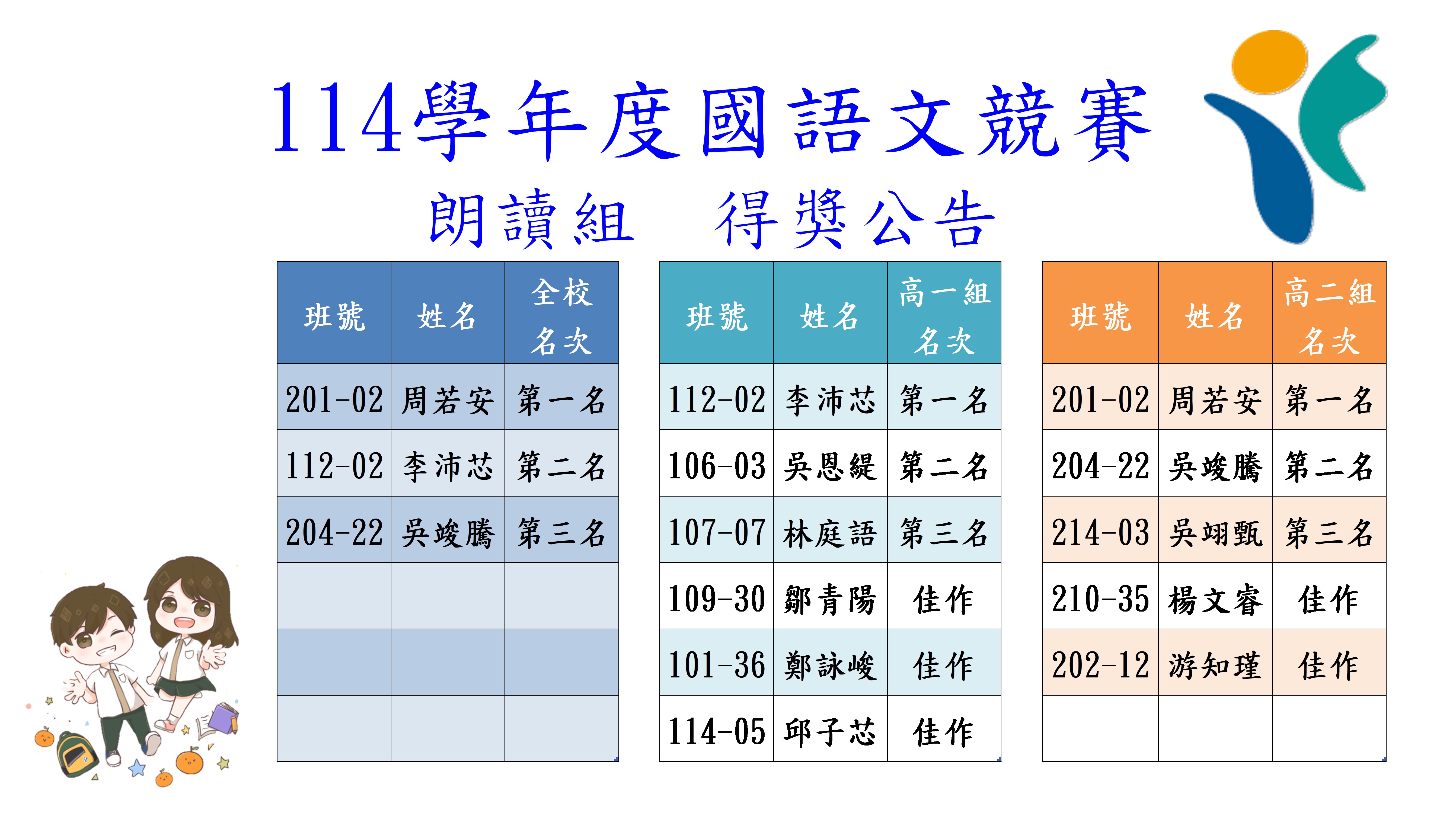 校園公告 公告主旨 114學年度國語文競賽朗讀組得獎公告 發佈日期 2025 年 12 月 18 日 發佈單位 教學組 公告類別 行政公告, 榮耀南湖 公告等級 狂賀 點閱次數 39 公告內容 相關附件 【2025-12-18】114學年度國語文競賽作文組得獎公告 【2025-12-18】114學年度國語文競賽演說組得獎公告